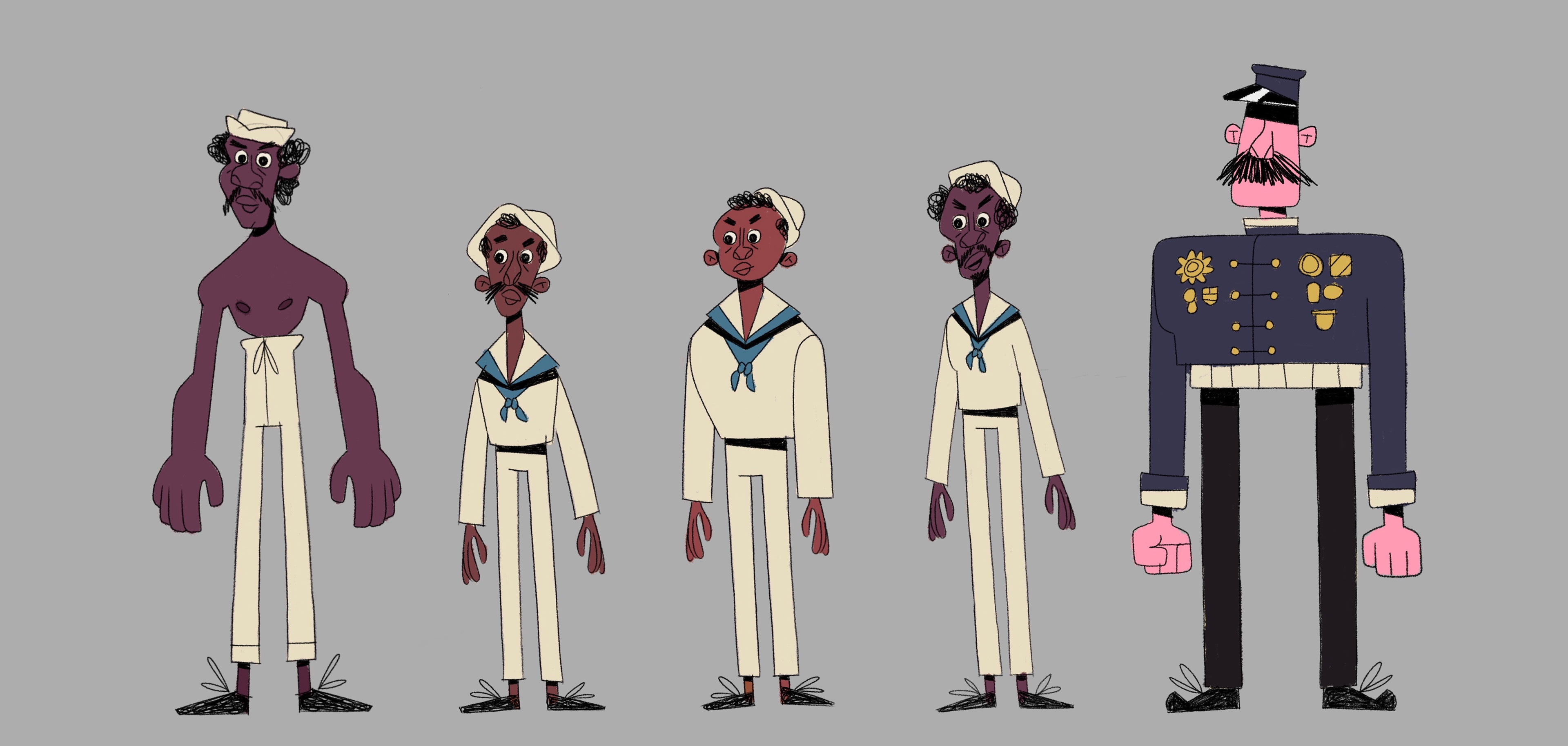 A selection of concept arts and character designs I've developed for the project "Almirante Negro"